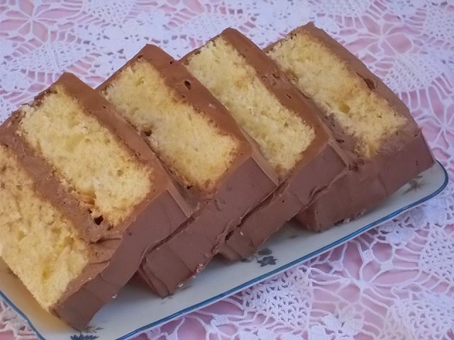 Krém: A tojásokat a cukorral és az olvasztott csokoládéval, gőz fölött addig keverjük, míg jól besűrűsödik. Nekem ez 15-20 percig tartott, de megérte. A vajat habosra keverjük, és a kihűlt masszát evőkanalanként a vajhoz keverjük. Adhatunk hozzá 1-2 evőkanál rumot is, majd megtöltjük a tésztát.