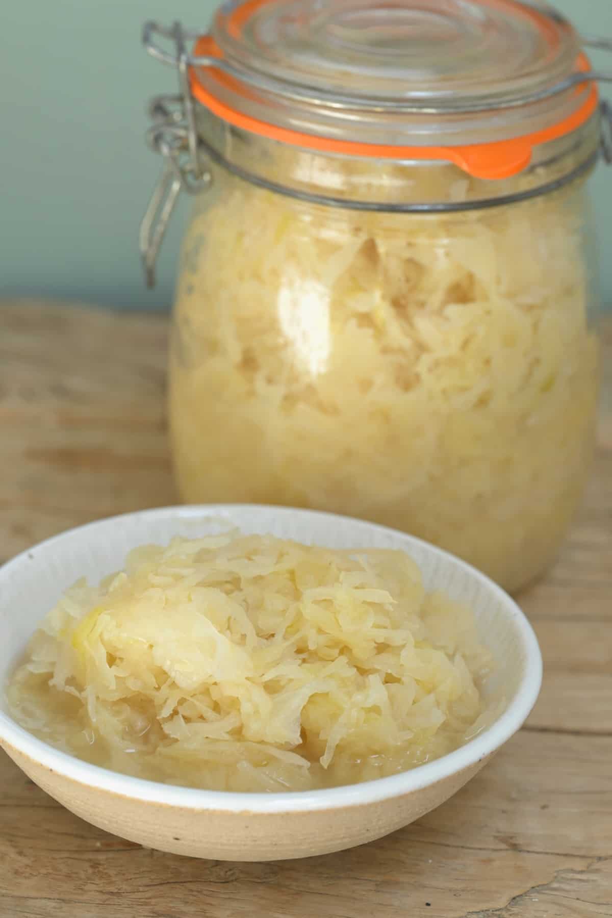 Zárd le az üveget (nem légmentesen) és hagyd szobahőmérsékleten erjedni 4-6 hétig. Az erjedés alatt a folyadék ellepi a káposztát, és kis folyadék távozhat az üvegből, ezért tegyél alá tányért vagy tálcát.