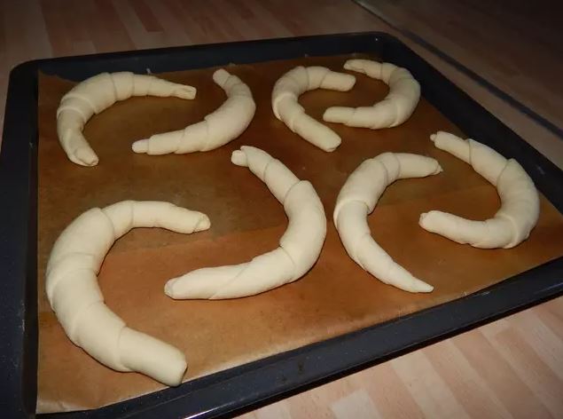 Sütőpapíros tepsire tesszük a kész kifliket.