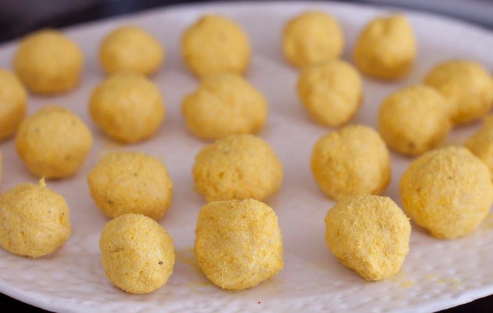 TIPP: Azért jó kanalat használni, mert egyformák lesznek a golyók. A formázásnál kicsit nedvesítsd be a kezed! Készíthetsz egészen apró golyókat, ha kiskanalat használsz!