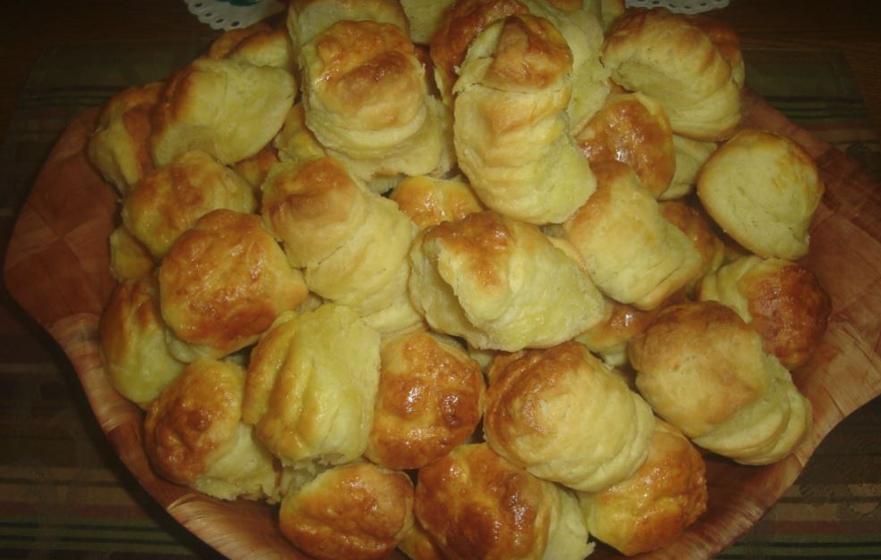 20 dkg vajat elmorzsolunk a liszttel, a közepébe öntjük a langyos tejfölt, belemorzsoljuk az élesztőt, hozzáadjuk a sót, és összegyúrjuk.